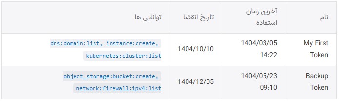 - آخرین استفاده – آخرین زمانی که توکن در درخواست API استفاده شده است.