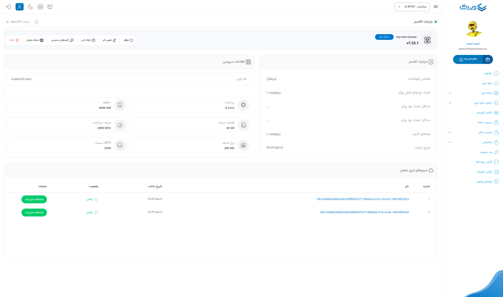 جزئیات سرور ابری