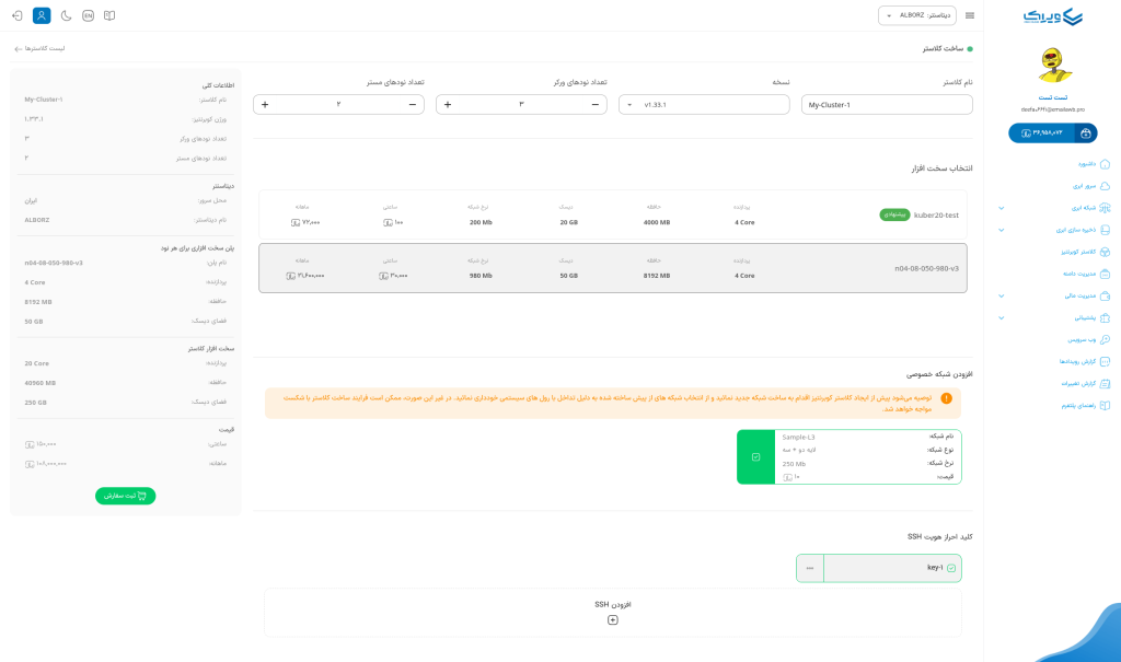 در این قسمت شما می توانید یک شبکه دارای سرور ابری با پهنای باند اختصاصی و ترافیک نامحدود ایجاد نمایید.