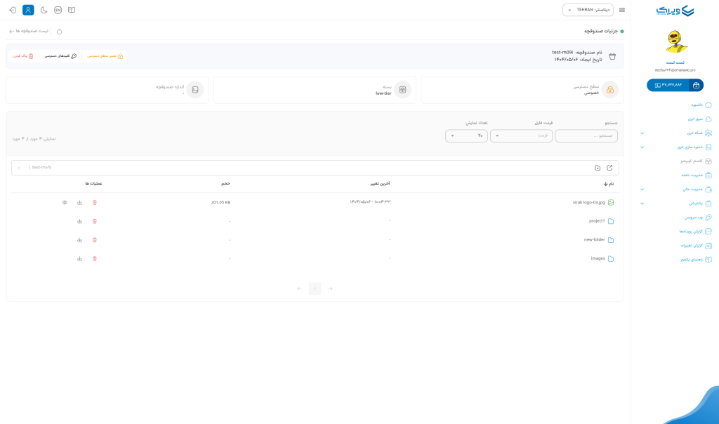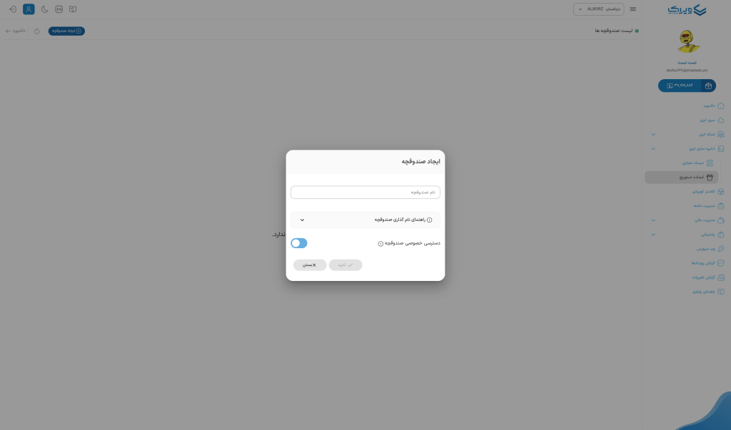 - ایجاد صندوقچه جدید: امکان ساخت صندوقچه با نام دلخواه و تنظیمات منطقهای.